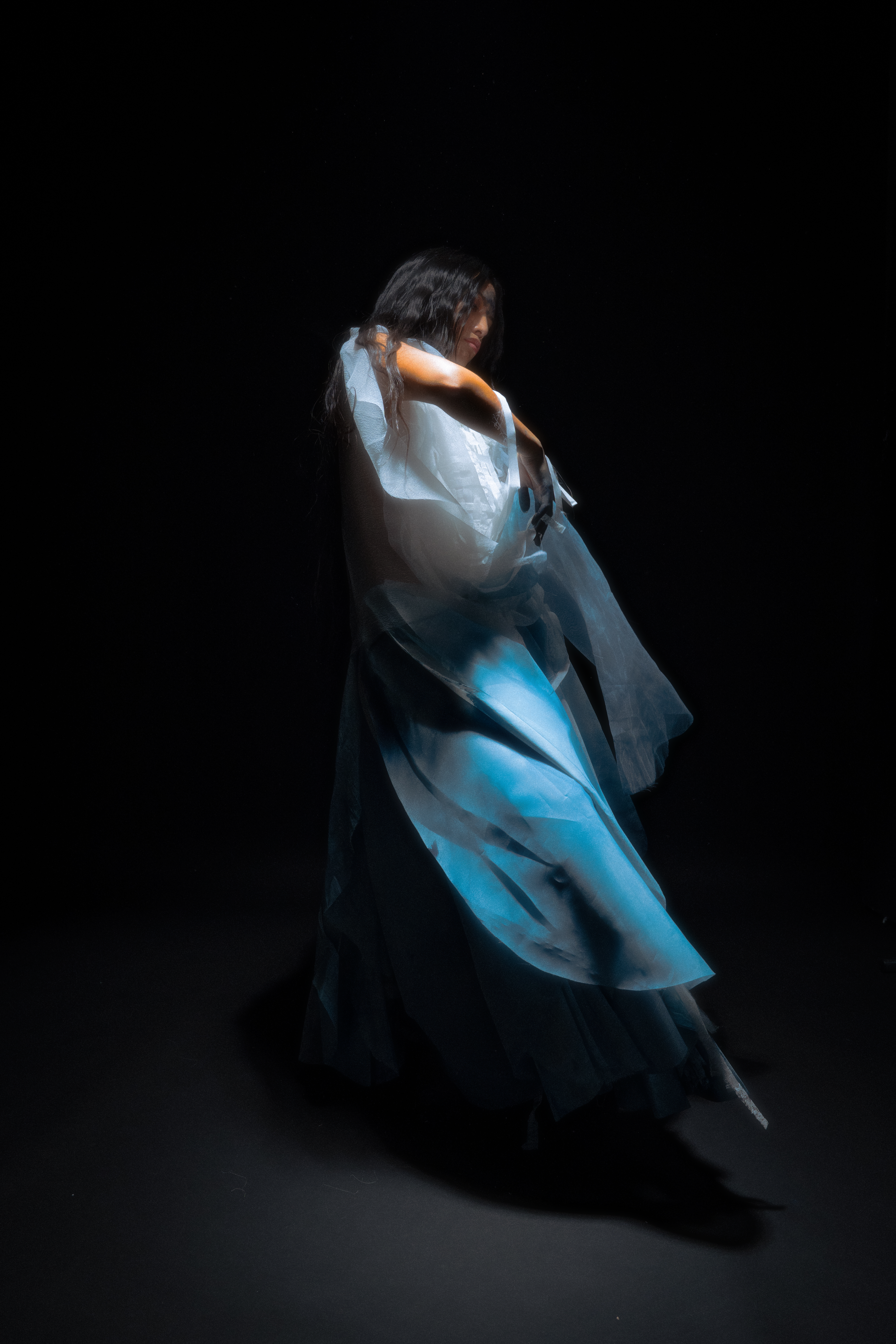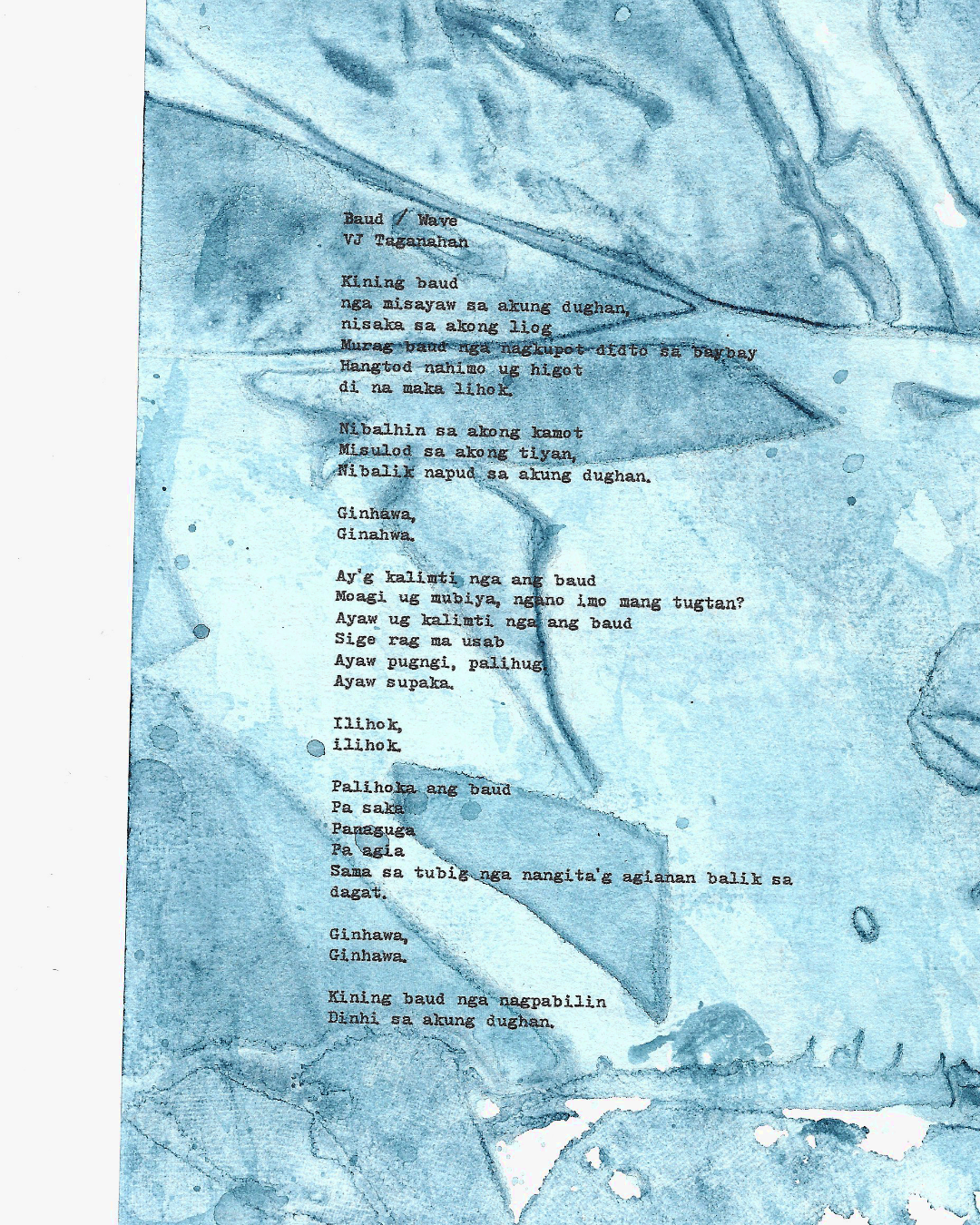 From this emerged “Baud” (Wave) — a spoken word piece first written in Bisaya and later translated into English. Meaning “wave,” Baud reflects the rhythm of grief: rising, breaking, receding, and returning. Through garment, textile and voice, the work acknowledges loss while honouring resilience, continuity and the quiet strength carried across generations.